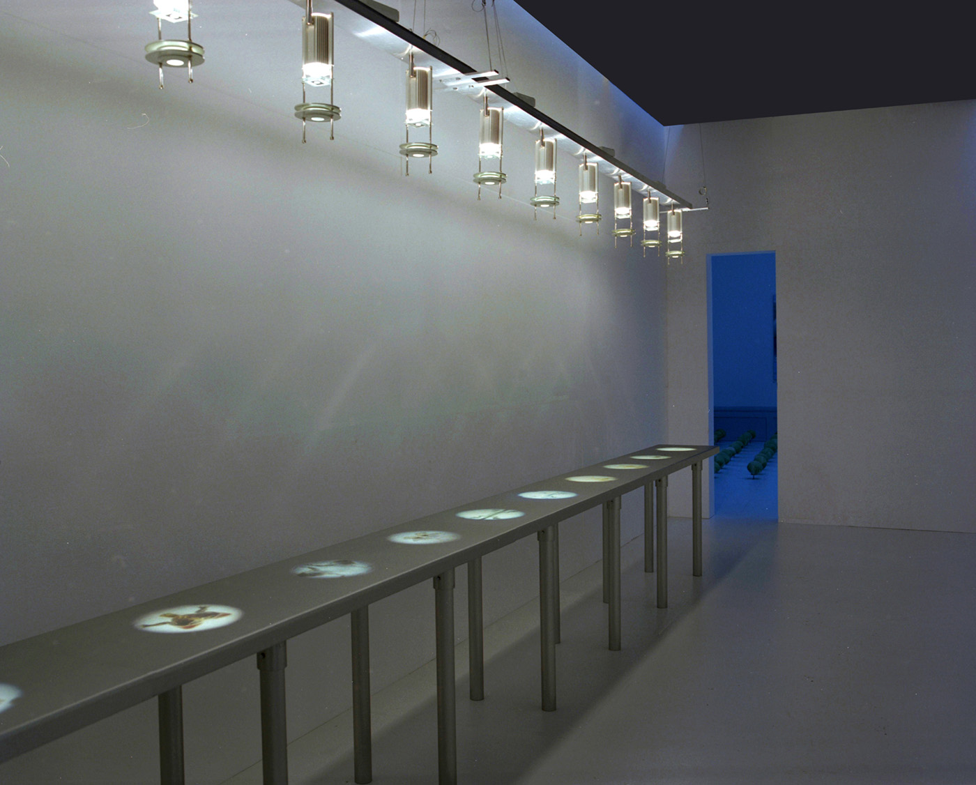 Diabilder, aluminiumbord (6m), 12 diabildsprojektorer, aluminiumskena (6m), frigolit